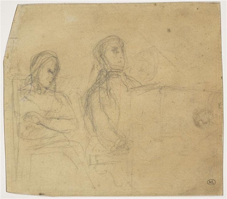 Slike: Ežen Delakroa, Portret Frederika Šopena, 1838; Portret Frederika Šopena (crtež), 1838; Skica za portret Sandove i Šopena, 1838.
