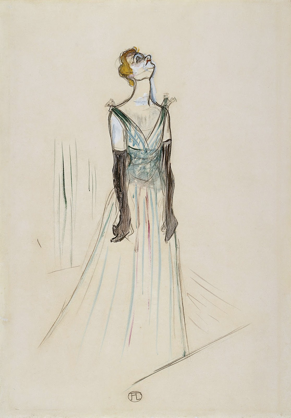 Tuluz-Lotrek biva pod uticajem dva savremenika, Degaa i Manea. Mane je često slikao scene pariskih kafea koje u Lotrekovoj umetnosti zauzimaju značajno mesto. Uticaj koji dolazi od Degaa primetan je pri prikazima igračica. Doduše, na Lotrekovim plakatima i ilustracijama Degaove krhke mlade balerine zamenile su sasvim drugačije scenske umetnice.