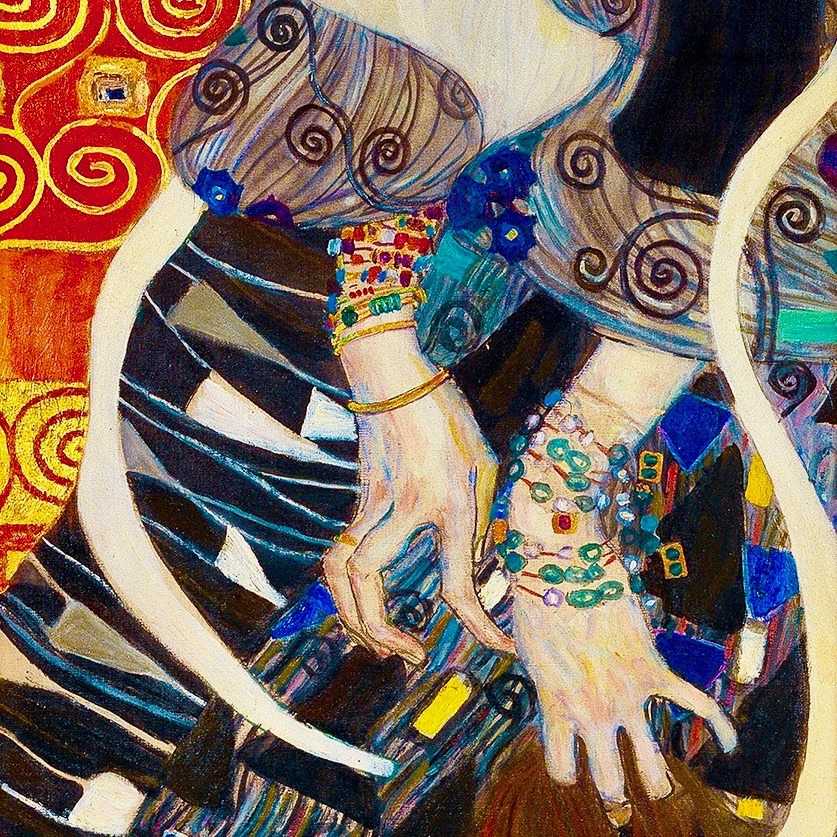 Oblici koji okružuju Klimtove portretisane ostavljaju mogućnost da ih poimamo kao dekoraciju ili da u njima uviđamo analogije sa određenim prirodnim pojavama: školjkama, mineralima, kamenčićima i oklopima kornjača. Ne samo da je Klimt imao sasvim jedinstvenu liniju, i ne samo da je koristio originalnu kombinovanu tehniku, već je bio tvorac i jednog novog viđenja ženske senzualnosti.