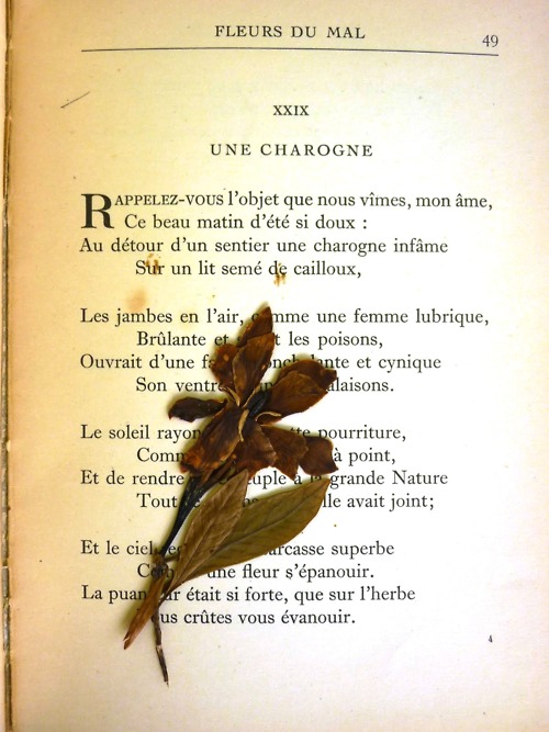Nije slučajno što je u tradiciji zbirka poezije često izjednačavana sa buketom cveća. Kada Šarl Bodler zbirci daje ime Cveće zla, on ukazuje na svoje pesme kao na venac. Ta nas činjenica opet vraća mitu. „Bolešljivo cveće“, kako on naziva svoje pesme u posveti Teofilu Gotjeu, jeste osušeno cveće herbarijuma, nosilac atmosfere uvenuća, odumiranja izmučenog bića usled bolesti veka, splina. Ovaj tekst o herbarijumima inicijacija je u sve kasnije tekstove koji će za temu imati umetnika u čijem stvaralaštvu motiv cveća ima estetski relevantno i, još važnije, dovoljno dvosmisleno mesto. Biljke su podjednako otrovne koliko i lekovite, baš kao i bavljenje umetnošću.