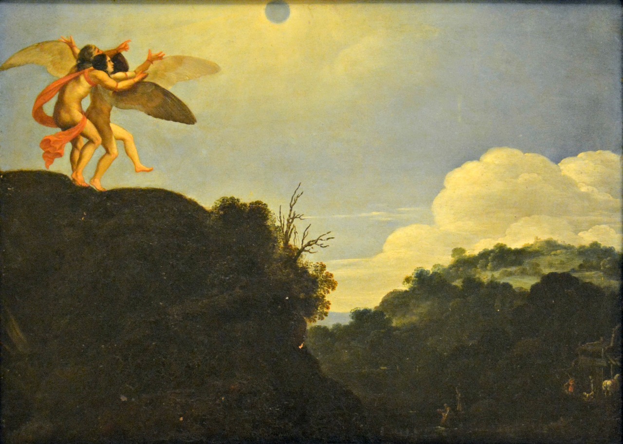 Slike: Jakov Piter Govi posle Pitera Pola Rubensa, Ikarov pad, 1636; Anton van Dajk, Dedal i Ikar, 1615-1625; Piter Brojgel, Predeo sa Ikarovim padom, 1560; Karlo Saraceni, Predeo Ikarovog poletanja, 1606; Karlo Saraceni, Predeo Ikarovog pada, 1606; Karlo Saraceni, Predeo u kome je Ikar sahranjen, 1606.