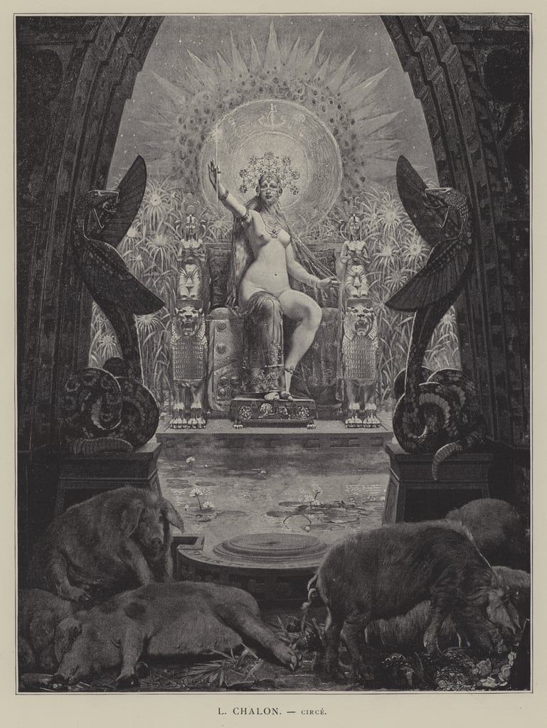 Slike: Žan Delvil, Idol perverzije, 1891; Louis Chalon, Kirka, 1888.