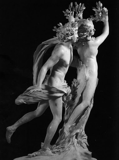 Priču o bogu Apolonu i nimfi Dafne italijanski barokni skulptor, arhitekta i slikar Đovani Lorenco Bernini mogao je pročitati u delu Metamorfoze rimskog pesnika Ovidija. Prema tvrdnjama teoretičara, ova skulptura rezultat je nadmetanja prostornih i vremenskih umetnosti. Skulptura i slikarstvo su prostorne dok su književnost i muzika vremenske umetnosti. Postavljalo se pitanje kako jedna umetnost unutar sebe može drugu da predstavi, kako posredstvom skulpture prikazati kretanje ili narativni tok koji u književnom delu zauzima nekoliko redova ili muziku koja traje tek nekoliko sekundi. U slikarstvu, trenutak je „dokumentovan“, u skulpturi on je „okamenjen“. Bernini je kretanje – bežanje nimfe od boga – kroz mermer, kroz statičnu i tvrdu masu, predstavio kao da je reč o fluidnoj i pokretnoj materiji koja pleše, koja je muzika i uzdah.
