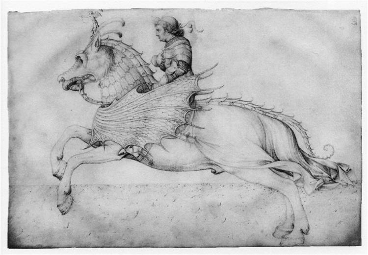 Venecijanski umetnik Jakopo Belini na jednom crtežu prikazao je viteza na krilatom konju, ili nekom drugom mitskom stvorenju koje ima istovremeno odlike zmaja i konja, kombinujući na taj način sveto i svetovno, religijske prikaze i viteške turnire.