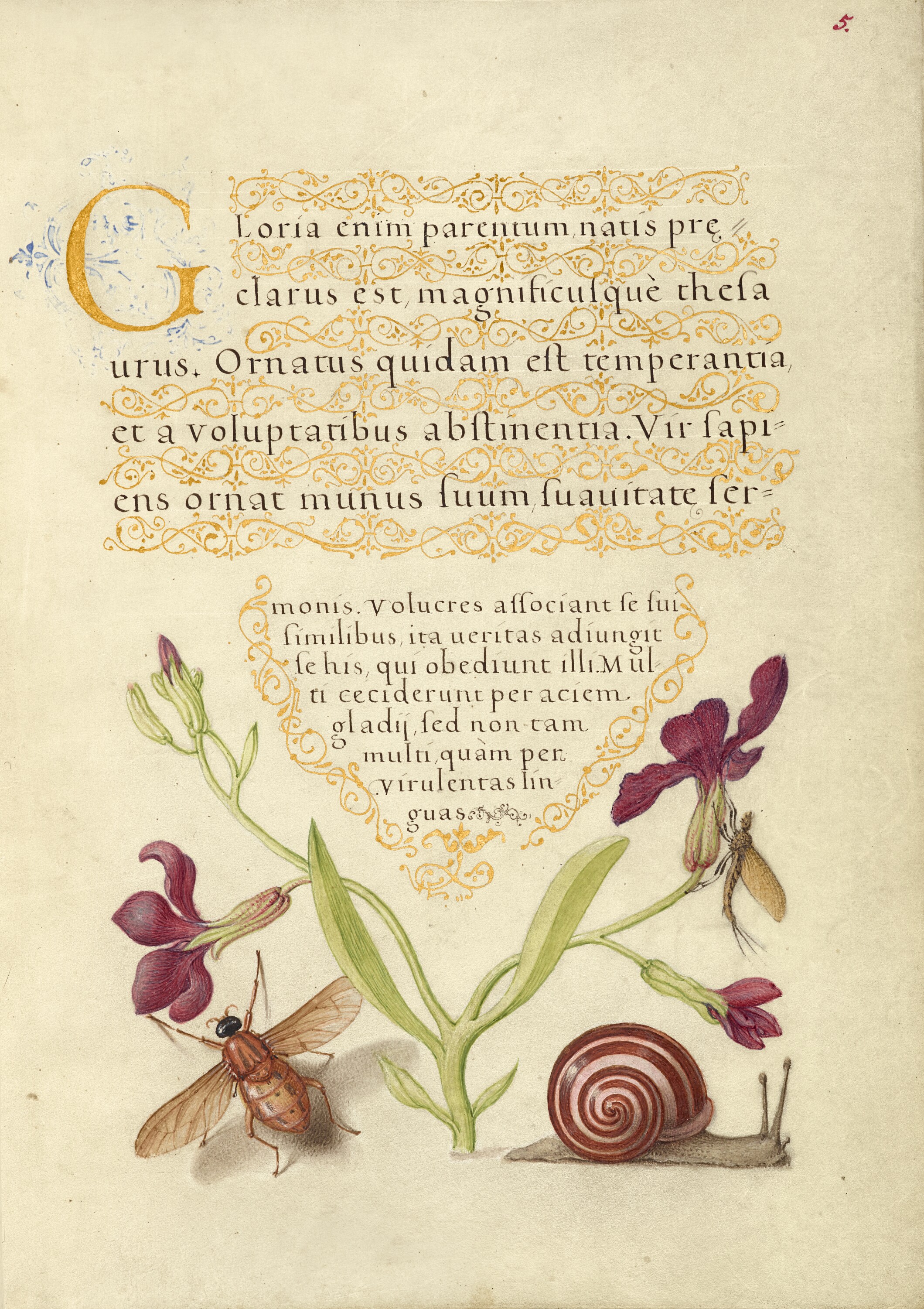 Još jedno likovno svedočanstvo o baroknoj fascinaciji insektima, biljkama i drugim prirodnim pojavama je rukopis Veličanstvena kaligrafska dostignuća (u originalu, na latinskom, Mira calligraphiae monumenta), koji je nastajao sredinom 16. veka, i ne na Surinamu, već na dvoru cara Rudolfa II, verovatno u Pragu i Beču. Ilustrator manuskrpta, Holanđanin Joris Hoefnagel i mađarski kaligraf Georg Bočkaj sačinili su ovu knjigu za Rudolfa II, cara Svetog rimskog carstva nemačke narodnosti iz loze Habzburgovaca. Hoefnagel je u jednom periodu svog života radio kao dvorski ilustrator, svojim radom dopunjujući nadaleko čuveni kabinet kurioziteta Rudolfa II.
