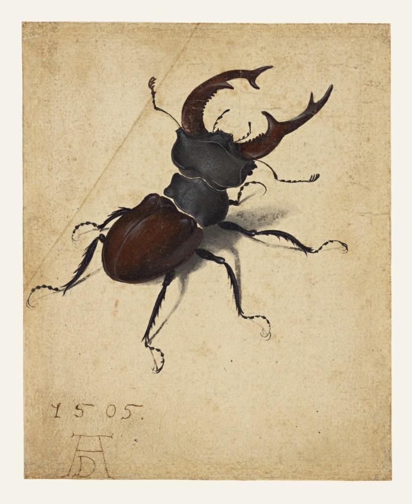 Jedna od slika koja prati ovaj tekst pripada Albrehtu Direru. On među prvima daje životinjama dostojanstvo kakvo zaslužuju: jer, baš kao u Donovoj pesmi, buba je nešto što po navici, ni ne razmišljajući, ljudi zgaze ili odgurnu. Direr na izvanredan način predstavlja njenu anatomiju. Isto će učiniti i sa sovom, krilom ptice, njuškom teleta, zecom. Veliko interesovanje za životinje tokom renesanse, na sličan način kao i Direr, pokazuje i Leonardo da Vinči. Sredinom 17. stoleća rođena je i nemačka umetnica Maria Sibila Merian poznata po izvanrednim crtežima egzotičnih biljaka i insekata koja stvara uz njoj slične umetnike toga doba, Jorisa Hoefnagela, Rahelu Rojš, Jana van Kasela, Ota Marseusa van Šrika.