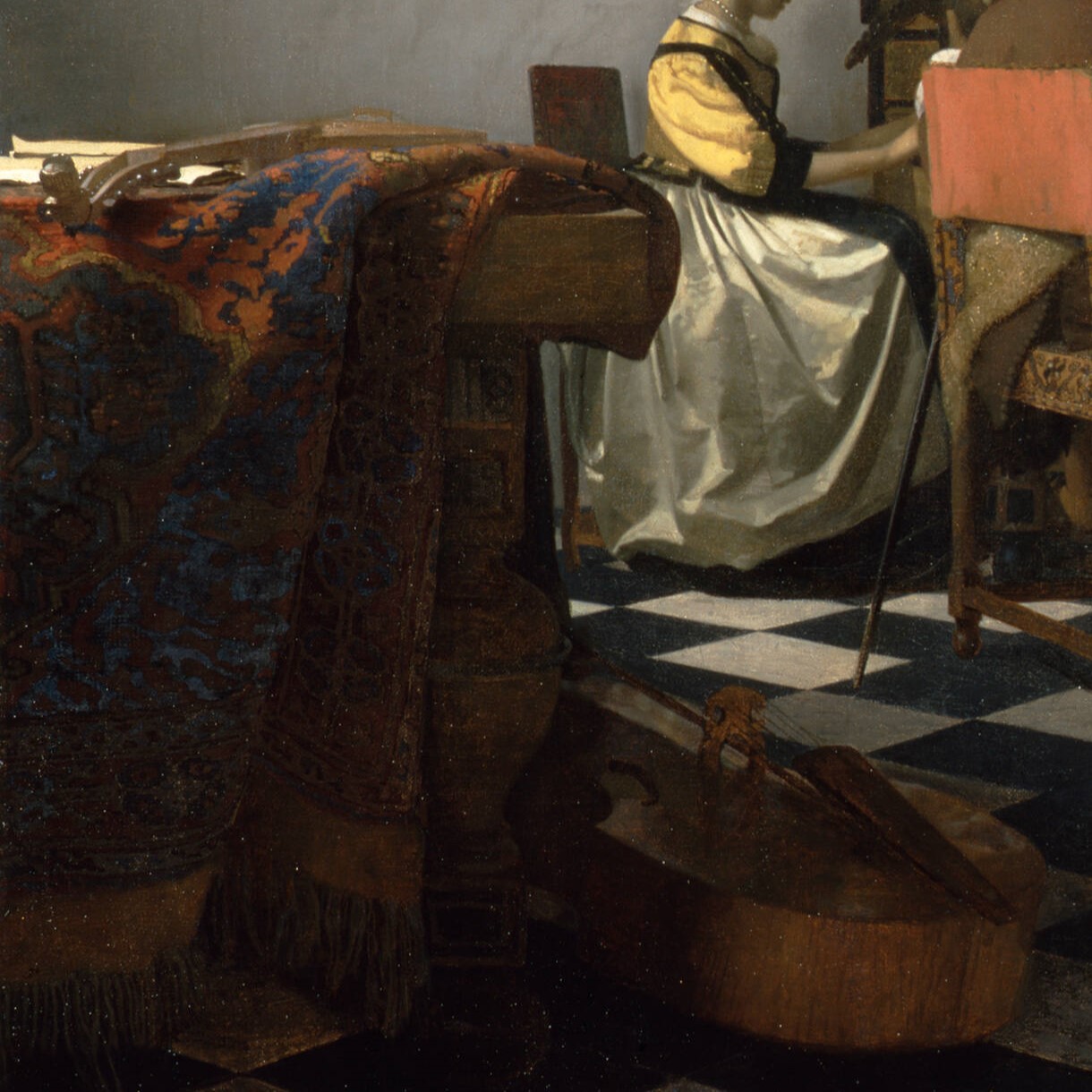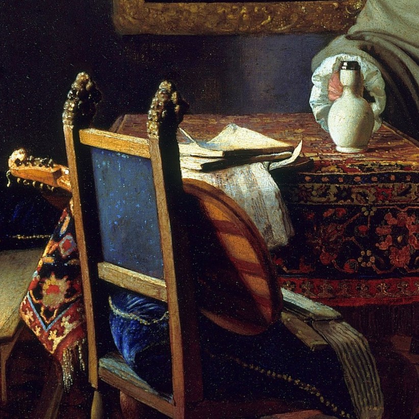 Slike: Umetnost slikanja, 1668; Par, 1660; Devojka za virginalom, 1672; Detalji sa različitih Vermerovih slika na kojima su prikazani predmeti