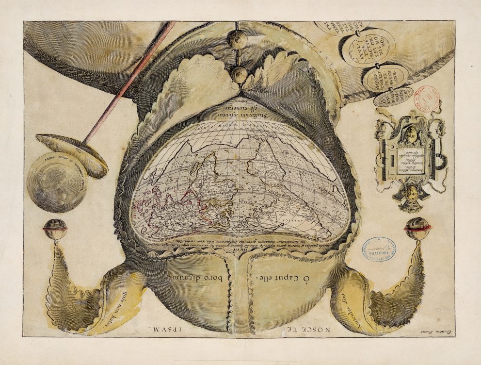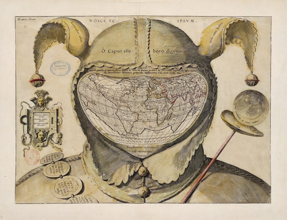 Slika: Nepoznati umetnik, Mapa sveta upisana u lice lude (Everyman), 1590.
