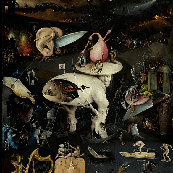 Slučajnošću istorije (postoji li tako nešto?) ništa spolja ne dolazi da ispuni nedostatak značenja. Od autora, Hijeronimusa Van Akena, zvanog Boš, celog života slikara u Boa le Diku, člana bratstva naše Gospe, umrlog 1516, ostalo je svega nekoliko pravnih dokumenata u kojima se navode dugovi, ugovori, narudžbine ili smrti. Nema se tu od čega praviti istorija. Nikakva biografija ne može poslužiti kao komentar i-ili izgovor za delo (1503-1504), tu veliku oslikanu dasku (220 x 195 cm) što nepomično stoji u muzeju Prado, boje ispucale od pet vekova starosti. Nikakav autorov tekst. Nema vodiča za Vrt koji čini središnju ploču triptiha. Gubim se u njemu.