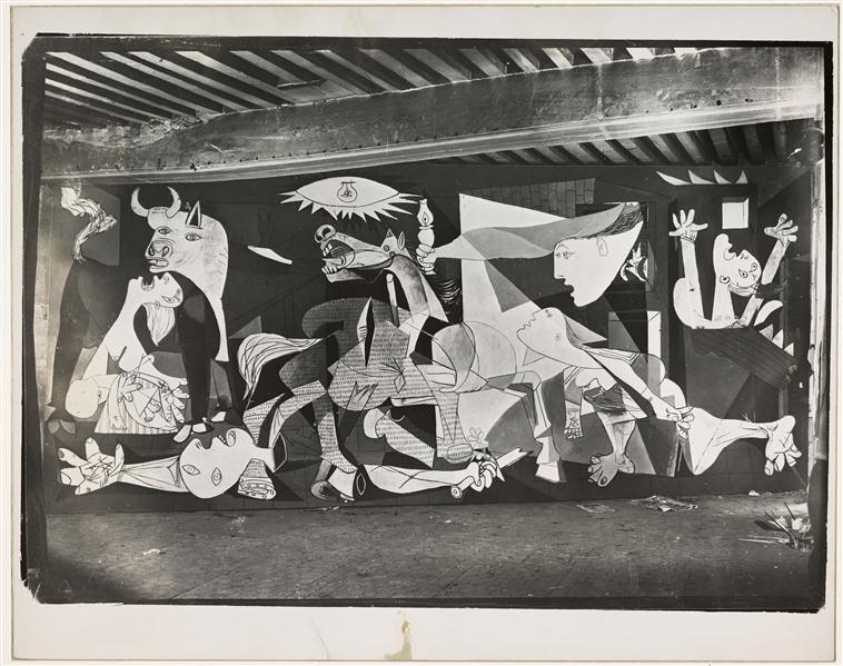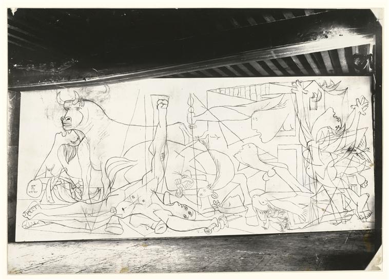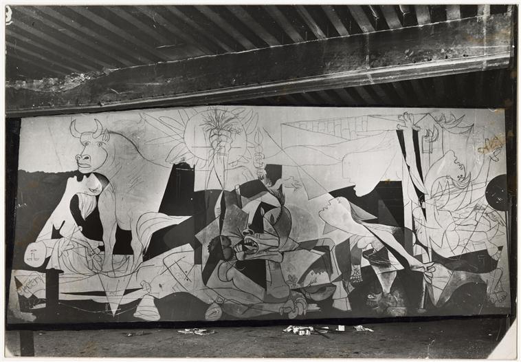 Slika je bila deo izložbenog paviljona Španije na Svetskoj izložbi održanoj iste godine u Parizu. Pikaso je počeo sa radom dve nedelje nakon događaja, 11. maja 1937. i radio je dva meseca. Platno je monumentalno i njegova veličina je simbolična. Ono je visoko 3.49 metara i široko 7.76 metara.