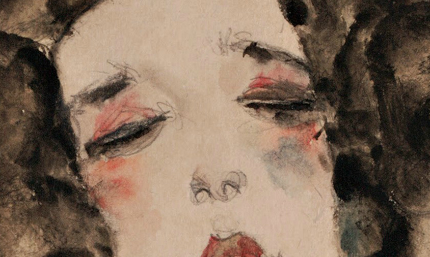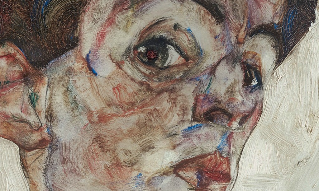 Šile ne izgleda izmučeno i anksiozno, nije nag, što je čest slučaj sa njegovim autoportretima, već izgleda ponosno i zavodnički podignute brade a blago spuštenih kapaka koji daju njegovom licu izgled blaziranog dendija. Usne su mu namazane crvenim karminom, obrve precizno iscrtane. Tako zamišljamo, recimo, engleskog slikara i pisca, dekadenta, Obrija Berdslija.