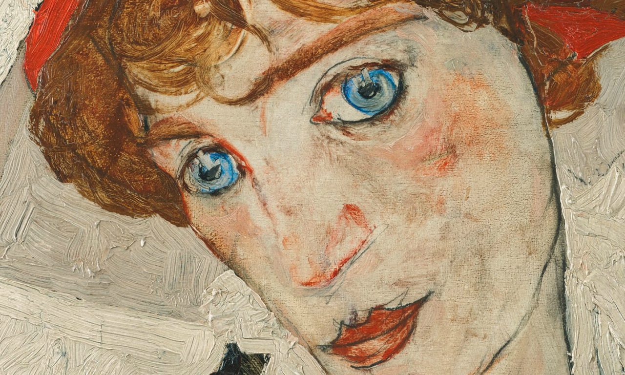Šile ne izgleda izmučeno i anksiozno, nije nag, što je čest slučaj sa njegovim autoportretima, već izgleda ponosno i zavodnički podignute brade a blago spuštenih kapaka koji daju njegovom licu izgled blaziranog dendija. Usne su mu namazane crvenim karminom, obrve precizno iscrtane. Tako zamišljamo, recimo, engleskog slikara i pisca, dekadenta, Obrija Berdslija.