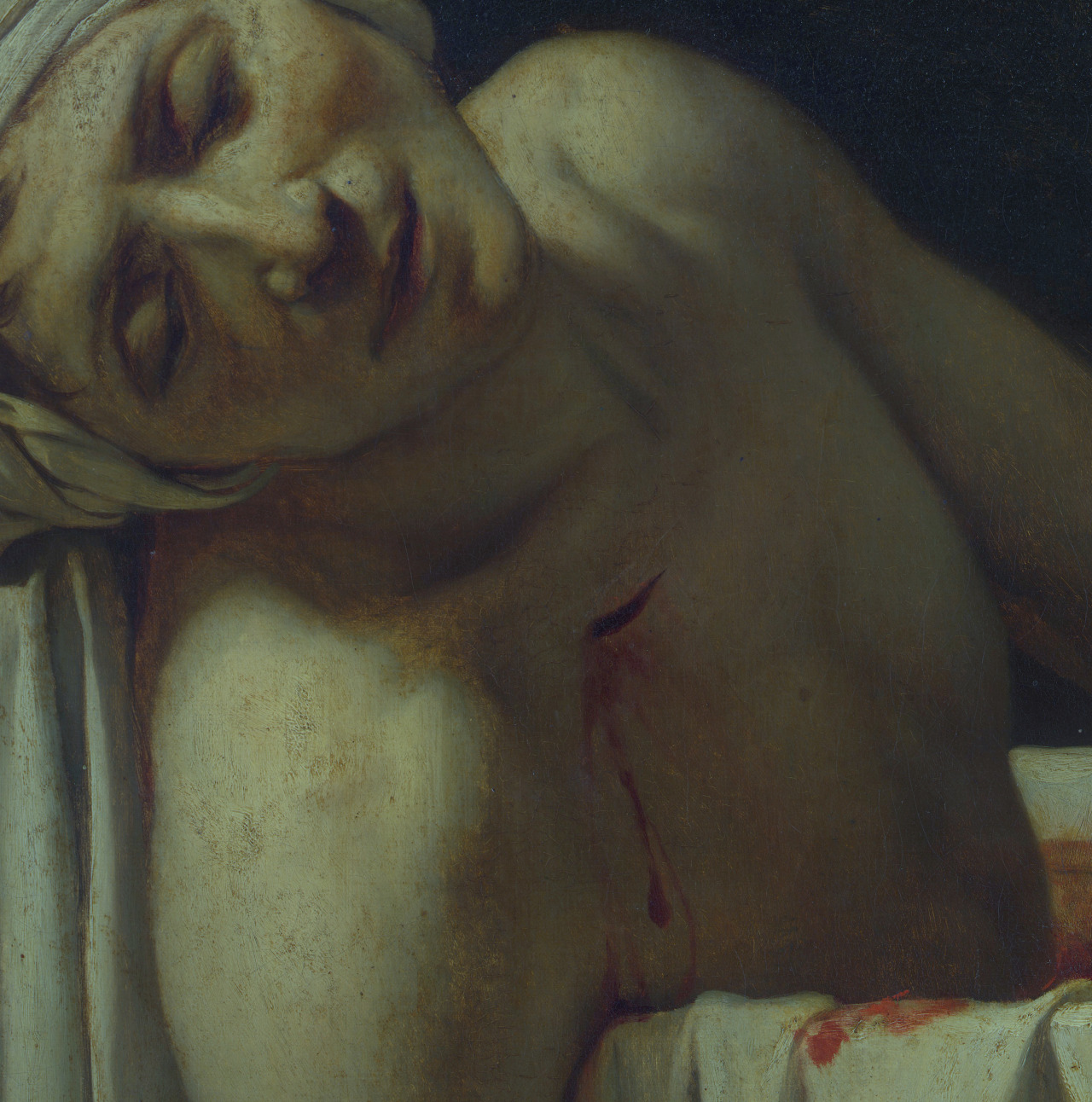 Istovremeno, Mara je bio jedan od najodvratnijih likova epohe. Ovde ga vidimo mrtvog, u kadi, ubila ga je Šarlota Korde, žirodnika, a on je bio jakobinac (dve suprotstavljene revolucionarne frakcije), kako bi zaustavila vođu ljudi koji su danima, mesecima besomučno giljotinirali ljude po Francuskoj.